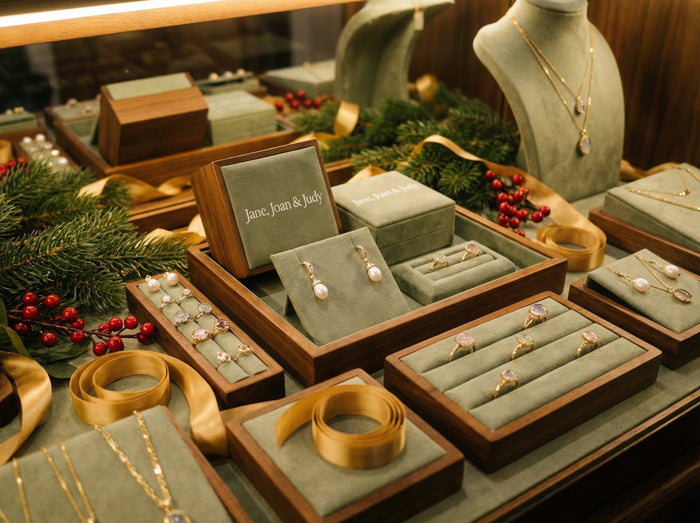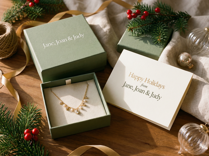 Beautifully packaged and ready to give, without the waste. Every order arrives in our reusable signature box or soft pouch, designed to be kept, not thrown away. We work with recycled and responsibly sourced materials wherever possible, and pack your pieces using minimal, recyclable packaging. If needed, we’ll happily handwrite any note you’d like included, so your gift feels personal and thoughtful as well as kind to the planet.