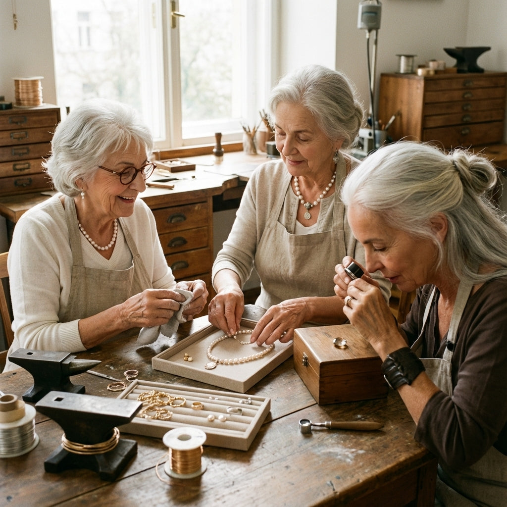 This is us in the little workshop where it all began, three sisters learning by doing, sharing tools and staying late to get one more detail right. We never set out to build a brand; we just wanted to make pieces we were proud to wear. Fifty five years later, we are still here, side by side, with the same hands and the same quiet determination behind every design.